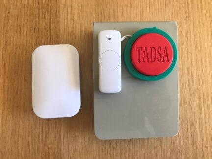 Our client Ted wanted a large call button, which could be clipped to the side rail of his bed to call his carer in another room. Ted also wanted it wireless and easily ‘relocatable’ so that he could put the call button into and out of the bed without setting off the call.