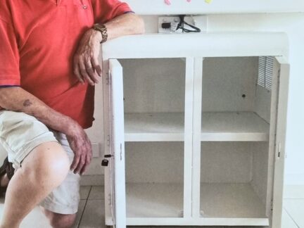 Understanding the unique needs of our client who is severely autistic and sometimes forgetful about safety, Dean from TADSA crafted a clever cabinet and securely fixed it to the wall with two lockable hinged doors featuring acrylic panels. This not only ensures the safety of James Xbox, CD and accessories but also allows him to see the contents inside.