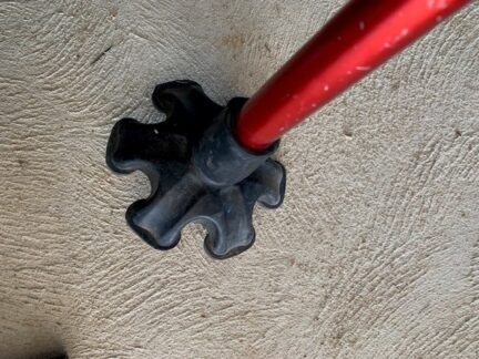 This is a neat way to carry your crutches or walking stick on your mobility scooter. When a client wanted this solution made for him, our tech maestro Gary designed and manufactured this nifty ‘cradle’ that holds the pair of crutches by 2 pullies on our client’s mobility scooter, helping him on his easy walks.