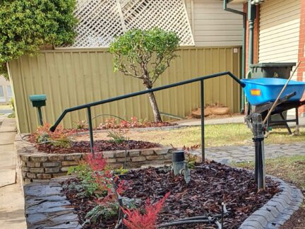 After an extensive search for commercial solutions our client sought the help of TADSA because she was unable to find the type of rail suitable for her requirements. It needed to be long enough for 4 external steps and be cemented into the adjacent garden bed but bend to the side so it is in easy reach when using the steps. The key requirement? It needed to bend to the side, ensuring easy access while using the steps!