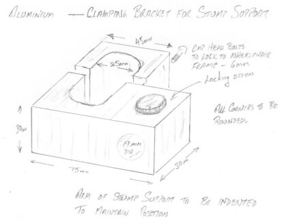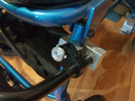 A thoughtful adaptation created to seamlessly integrate a 'Stump Support' to our clients new wheelchair by designing a custom bracket so that it can be used across both the existing chair and the new one.