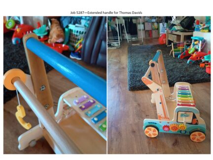 Our young client’s parent asked us to extend the push handle on a favourite toy! This simple yet impactful modification was achieved by extending the side frames and adding a brand-new handle that’s perfectly suited to the child’s height. It might be a simple job but promoting independence is our gig, so making playtime even more joyful with tailored modifications that keep your child smiling and engaged is our encouragement.