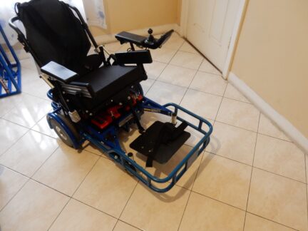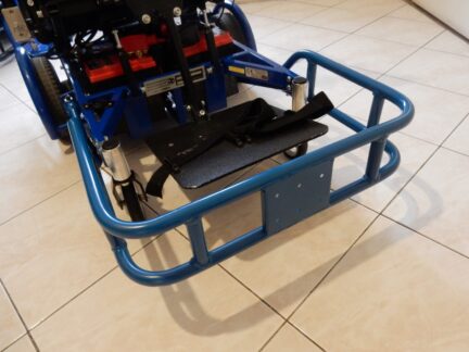 Ashely wanted his power wheelchair fitted with a custom bull bar/footguard produced by our expert volunteers that would also have an attachable mount in front of the guard to carry his t-stick to play hockey. Mike Coles of TADSA did a brand-new design that totally complies with hockey rules while making this ‘cool’ sport attachment safe, solid, and sturdy.