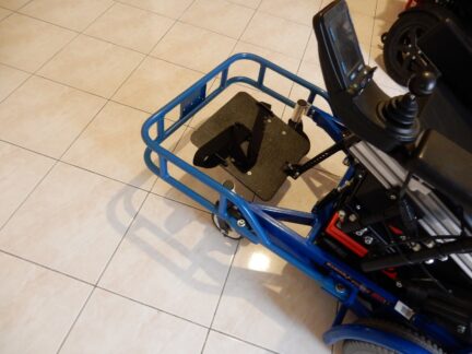 Footguard and T-stick attachment on his Power Wheelchair