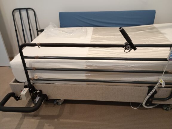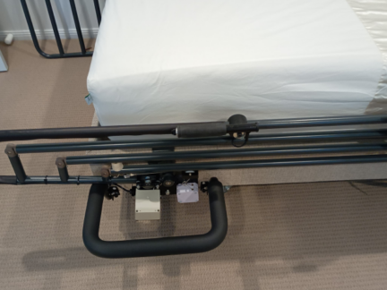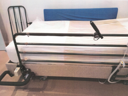 To ensure safety during operation, particularly concerning fold-down speed, we incorporated a cable-operated door closer into this design. This addition is crucial as it regulates how quickly the frame can collapse, preventing any sudden drops that could lead to injuries or accidents. By implementing these features, we create a safer and more user-friendly experience for individuals utilizing full-length ‘fold down’ bed rails.