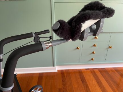 Meet the walker transformed by our AT genius, Bruce, tailored precisely to fit our client's unique walking style and posture. Originally a four-wheel walker designed for left-hand use, Bruce expertly modified it for single right-hand operation. He crafted a brake lever assembly for easy control on the right side.