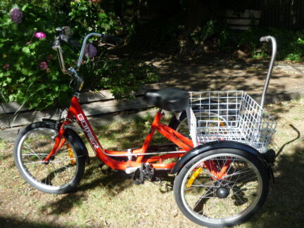 Trisha was beyond excited with this trike hand-crafted to accommodate her physical limitations and cycling goals. Our Freedom Wheels experts customized it with an adjustable rear steering assembly which allows the parent or carer to steer Trisha from behind, special back pedal brakes, thorn-proof tyre tubes, with special wide seat, toe clips and foot cups.